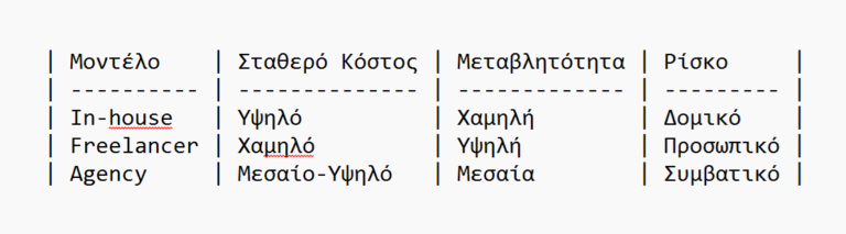 Το δίλημμα In-house, Freelancer ή Agency δεν είναι επιχειρησιακό.