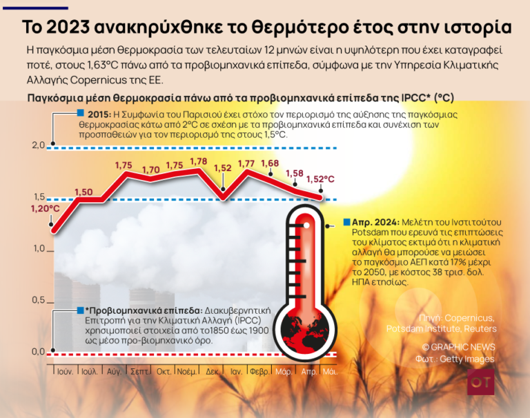 Η κλιματική αλλαγή επιδεινώνει τις επιπτώσεις των ακραίων καιρικών φαινομένων, καθώς τους τελευταίους 12 μήνες η παγκόσμια μέση θερμοκρασία ήταν κατά 1,63οC υψηλότερη από τα προβιομηχανικά επίπεδα και πάνω από το όριο του 1,5οC που οι επιστήμονες λένε ότι απειλεί τη ζωή στον πλανήτη.