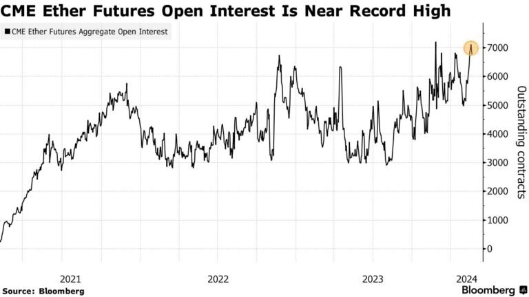 Στον τομέα των παραγώγων, το ανοιχτό ενδιαφέρον του CME για την αγορά συμβολαίων μελλοντικής εκπλήρωσης Ether πλησιάζει νέο ρεκόρ, σε μια ένδειξη της σχετικής ζήτησης από θεσμικούς επενδυτές.