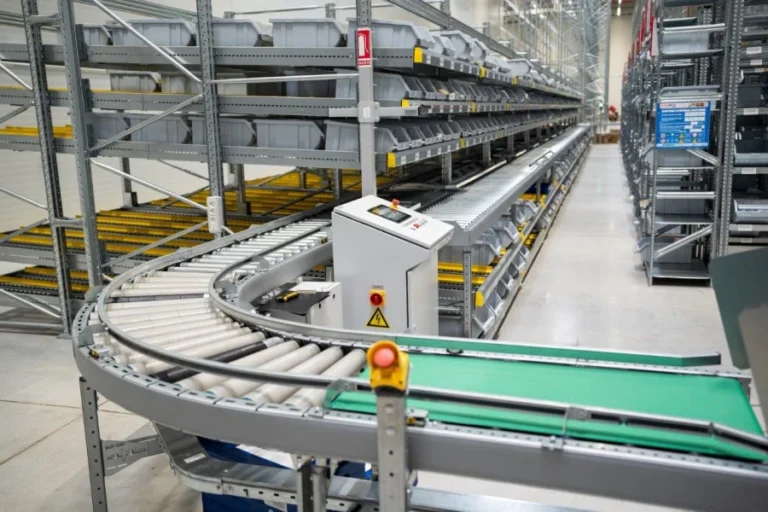 Οι pickers συλλέγουν τα φάρμακα από ράφια carton flow και τα τοποθετούν σε πλαστικά δοχεία (totes), τα οποία κινούνται μέσω ραουλόδρομων προς τις κατάλληλες θέσεις ανάλογα με την παραγγελία.